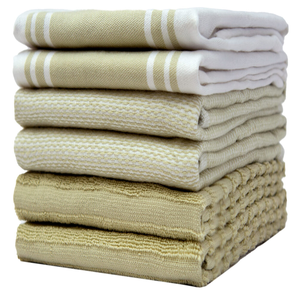 Premium Dish Towels (20? 28 6 Pack) | Large Cotton Kitchen Hand Towels | | Flat & Terry Highly Absorbent Tea Towels Set with Hanging Loop | Tan