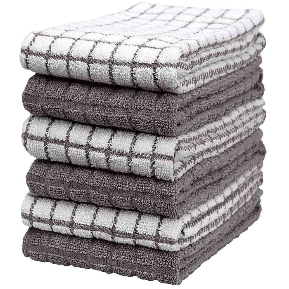Premium Kitchen Towels (20”x 28”/ 50 x 70 cm 6 Pack) – Large Cotton Kitchen Hand Towels – Flat & Terry Towel – Highly Absorbent Tea Towels Set with Hanging Loop (Grey)