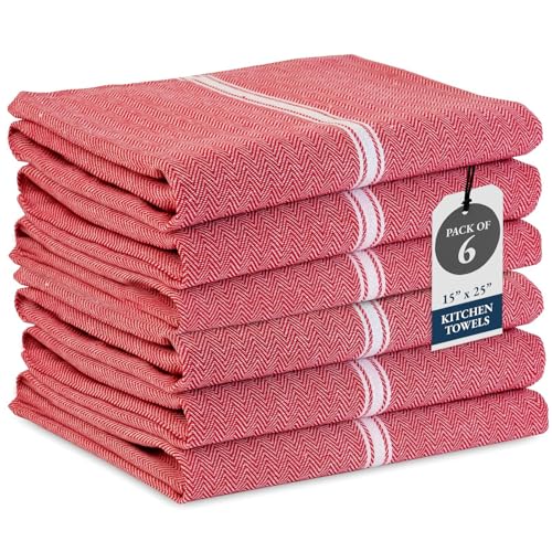 LANE LINEN Kitchen Towels Set - 100% Pure Cotton Dish Towels for Kitchen, Super Absorbent Kitchen Hand Towel, Tea Towels, Soft & Durable Dish Cloths, Pack of 6 – 14”x25”, Red