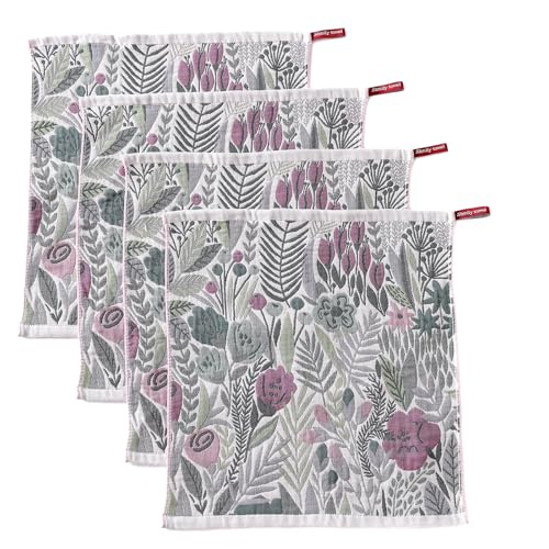 HOORDRY 100% Cotton Tea Towels with Hanging Loop | Pack of 4 | Dish Towels & Kitchen Hand Towels for Home, Kitchen, Bathroom | Super Absorbent & Quick-Drying | 41x38CM | Decorative Floral Patterns