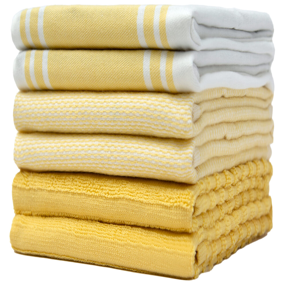 Kitchen Towels Set - Pack of 6 Cotton Dish Towels for Drying Dishes, 18”x 28”, Kitchen Hand Towels, Absorbent Tea Towels, Premium Dish Towels for Kitchen, Quick Drying Kitchen Towel Set - Yellow
