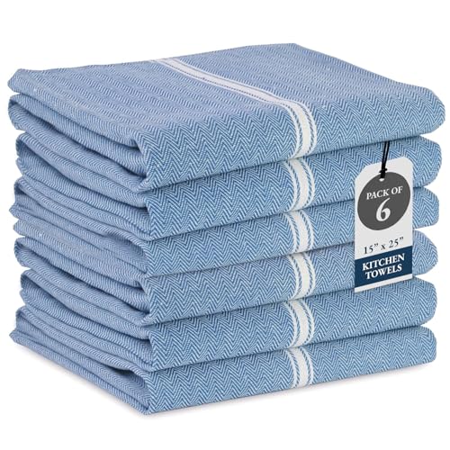 LANE LINEN Kitchen Towels Set - 100% Pure Cotton Dish Towels for Kitchen, Super Absorbent Kitchen Hand Towel, Tea Towels, Soft & Durable Dish Cloths, Pack of 6 – 14”x25”, Indigo