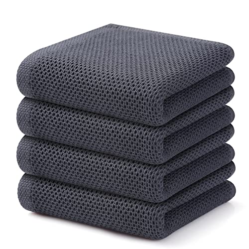Kitinjoy 100% Cotton Waffle Weave Kitchen Towels, 4-Pack Super Soft and Absorbent Kitchen Dish Towels for Drying Dishes, Kitchen Hand Towels, 13 in x 28 in, Dark Grey