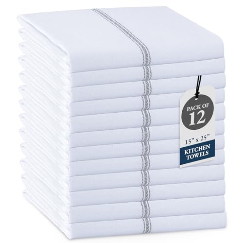 LANE LINEN Kitchen Hand Towels, 12 Pack Dish Towels for Kitchen Drying, 100% Cotton Super Absorbent Tea Towel, Quick Dry, 14"x25", Useful for Cleaning Countertops, Durable for Daily Use - Grey Stripe