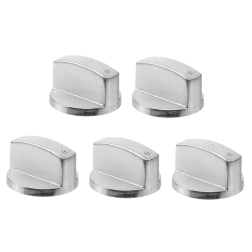 Toyvian 5pcs Gas Stove Control Knobs Silver Burner Replacement Switch for Kitchen Hobs Durable Alloy Design Easy to Install Compatible with Gas Cooktops