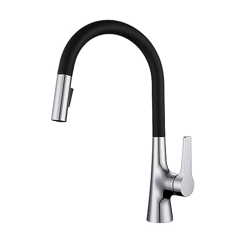 HAGTRB White and Black Kitchen Faucet Single Handle Pull Out Kitchen Mixer Hot and Cold Water Taps Deck Mounted (Color : Matte Black)