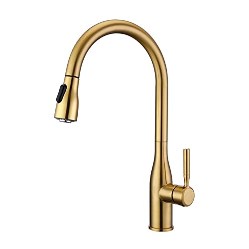 CXYWBD Brushed Gold and Black Kitchen Faucet with Pull Out Sprayer Single Handle Single Hole Sink Mixer Faucet Hot and Cold Water Dispenser