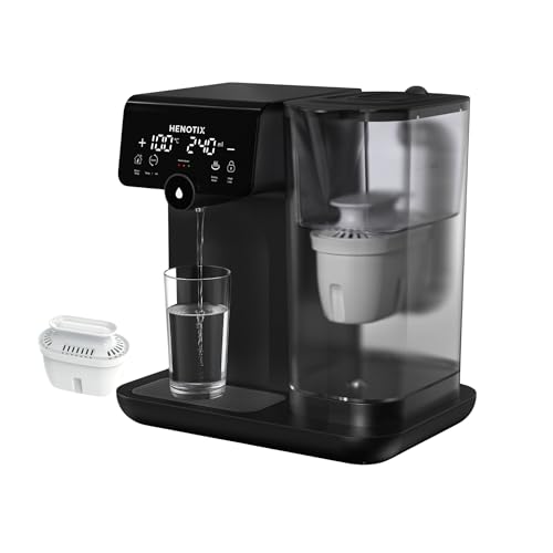 Henotix Instant Hot Water Dispenser with Filter, 12 Temperature Settings, 2.8L Detachable Jug, Limescale Resistant, Energy Saving, One-Touch Operation, Digital Touch Screen, for Home Kitchen - Black