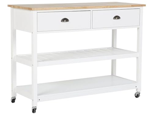 Beliani Kitchen Trolley Island on Wheels White with Drawers Wooden Top Navarino