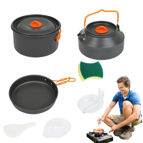 Xujuika Backpacking Cooking Set | Camping Pots and Pans Tea Kettle Set,Kitchen Supplies Cookware for Frying Stewing BBQ Outdoor Hiking Backpacking Survival Fishing Hunting Picnic Party