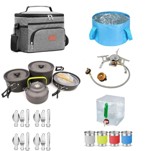 Camping Cookware Stove Kettle Cooking Kit - Camping Kitchen Set - Camping Pots and Pans Set - Camping - Backpacking Supplies Over Equipment