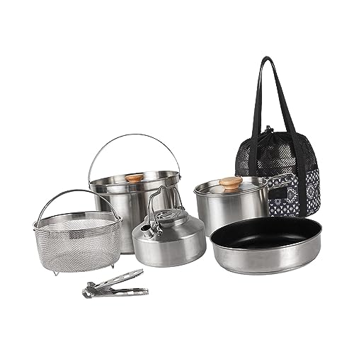 Cooking Set - Portable, Camping Pans and Outdoor Teapot | Multi-Purpose Frying Pots and Boiling Kettle | Lightweight Survival Cookware for Hiking, Hunting, Picnic, Bbq, Fishing, Family Kitchen