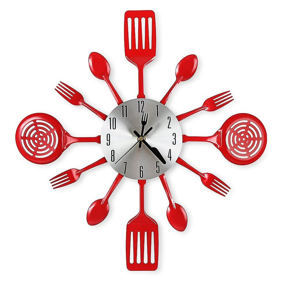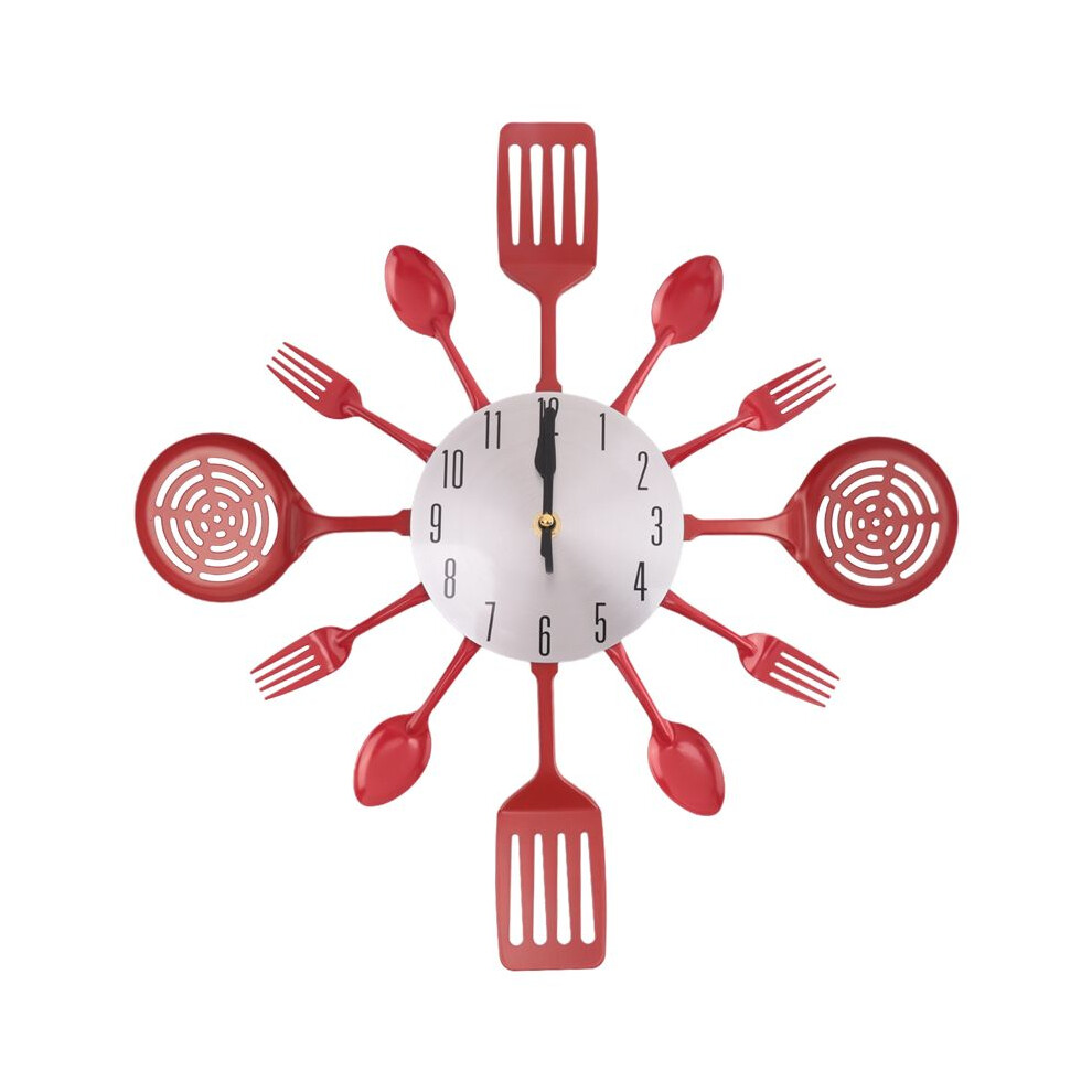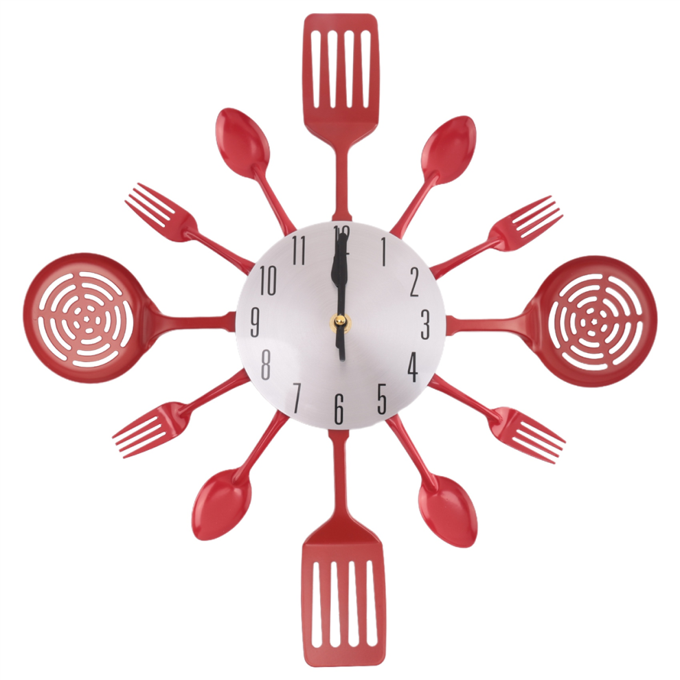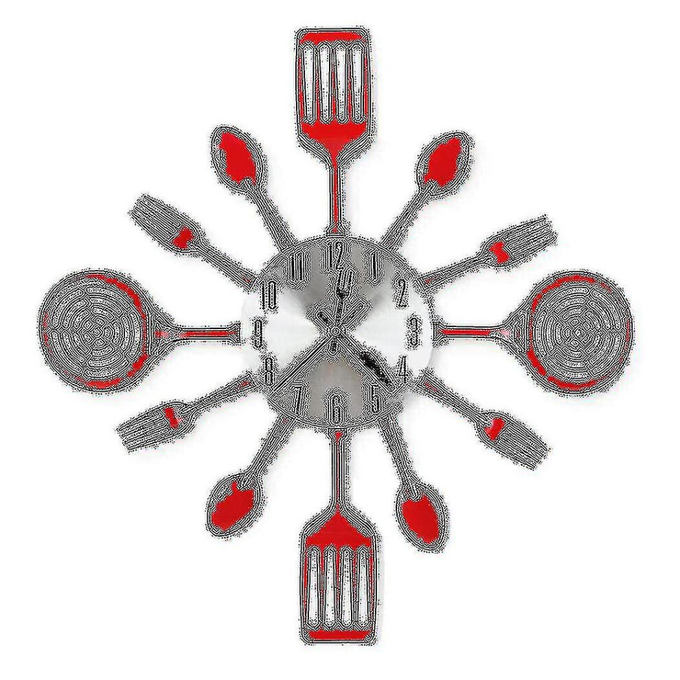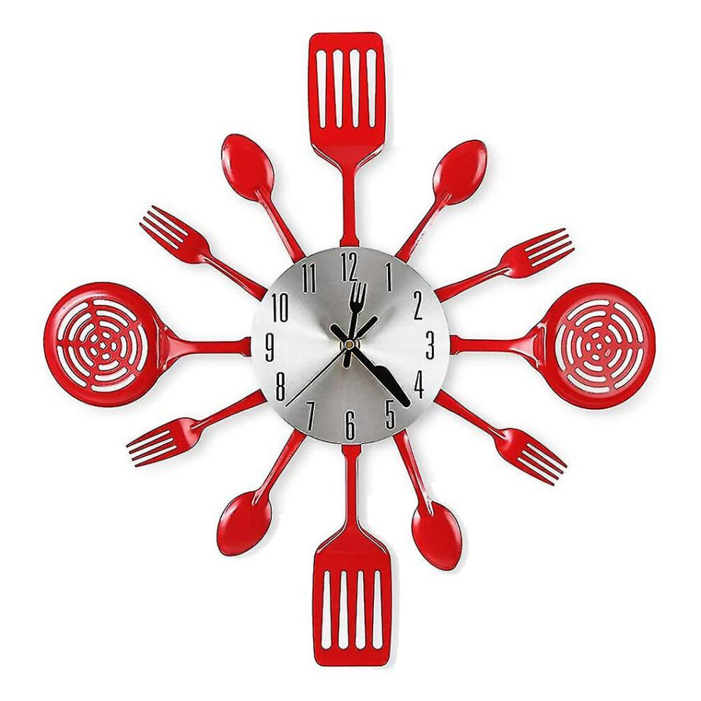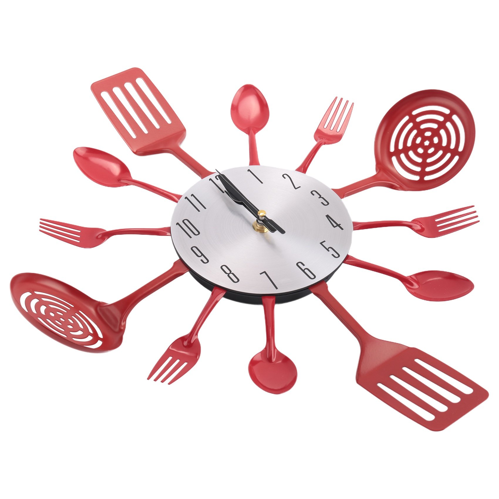 (As show, One size) 16 Inch Large Kitchen Wall Clocks with Spoons and Forks, Great Home Decor and Beautiful Gifts, Red