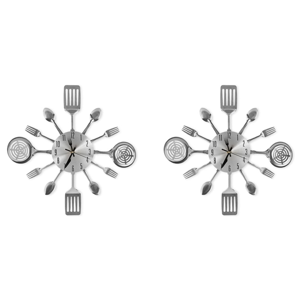 2X Large Kitchen Wall Clocks with Spoons and Forks,Great Home Decor and Nice Gifts,Wall Clock Tableware Wall Clock