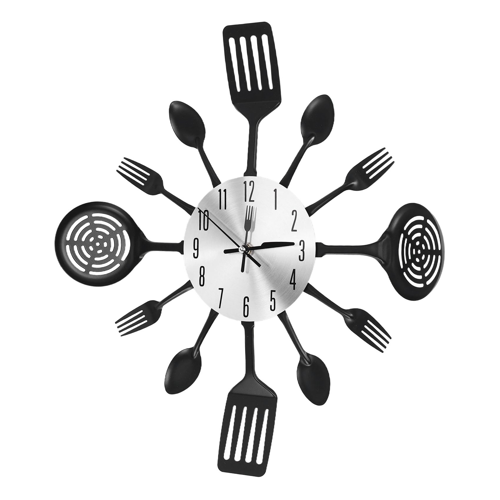 Aniyaa 16 Inch Large Kitchen Wall Clocks with Spoons and Forks,3D Tableware Wall Clock Room Home Decoration(Black)