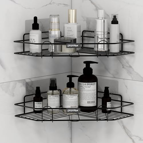 Plantex Self Adhesive Corner Shelf for Bathroom/Adhesive Shelf for Kitchen - with Magic Sticker/Bathroom Organizer without Drill - Pack of 2 (Diamond, Black)