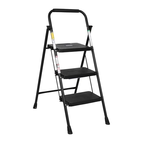 SIMPLI-Magic 800 LBS 3 Tread Folding Step Ladder - Wide Steps & Non Slip Handle - ANSI Certified Lightweight & Durable Steel Step Stool for Kitchen, Home, Office and
