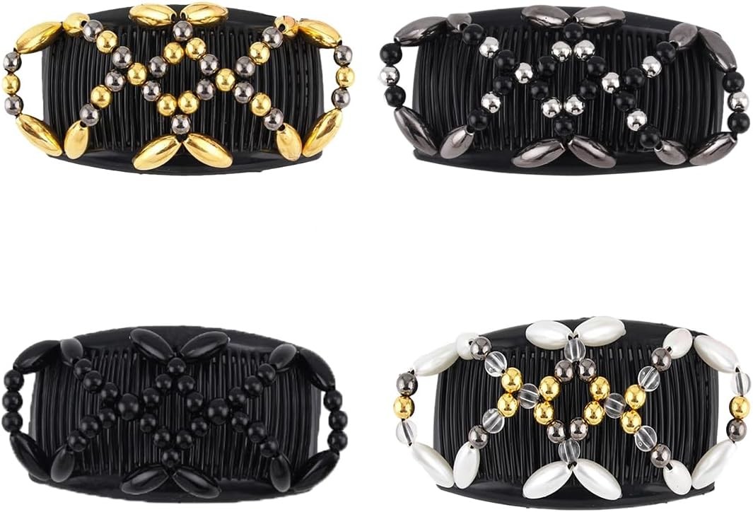 4pcs Kitchen-dream Magic Beads Hair Comb Magic Elastic Hair Combs Double Clips