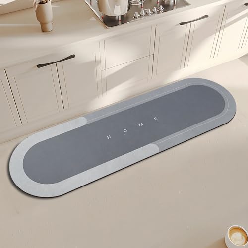 Topzywlc Kitchen Mat Non Slip Anti Mould 45 * 150 cm, Quick Dry Magic Kitchen Floor Mat, For Bathroom, Bedroom, Kitchen, Toilet, Door, Washing Table (Oval Light Gray, 45 * 150 cm)