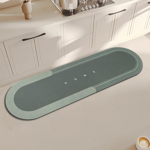 Topzywlc Kitchen Mat Non Slip Anti Mould 45 * 150 cm, Quick Dry Magic Kitchen Floor Mat, For Bathroom, Bedroom, Kitchen, Toilet, Door, Washing Table (Rectangular Green, 45 * 150 cm)