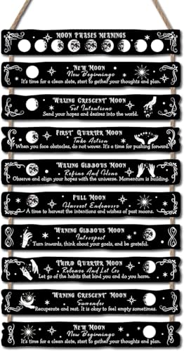 HPNIUB Moon Phase Plaque Wall Decor, Witchcraft Wall Art, Witchcraft Supplies, Celestial Home Decor Aesthetic,Gothic Kitchen Decor,Halloween Magic Poster, Witchy Room Decor (Backyard)