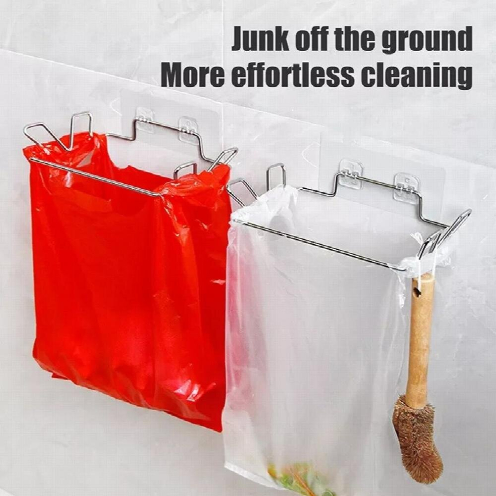 Stainless Steel Kitchen Trash Rack Magic Seamless Sticker Multifunctional Storage Racks Cabinet Door Towel Garbage Bags Holder