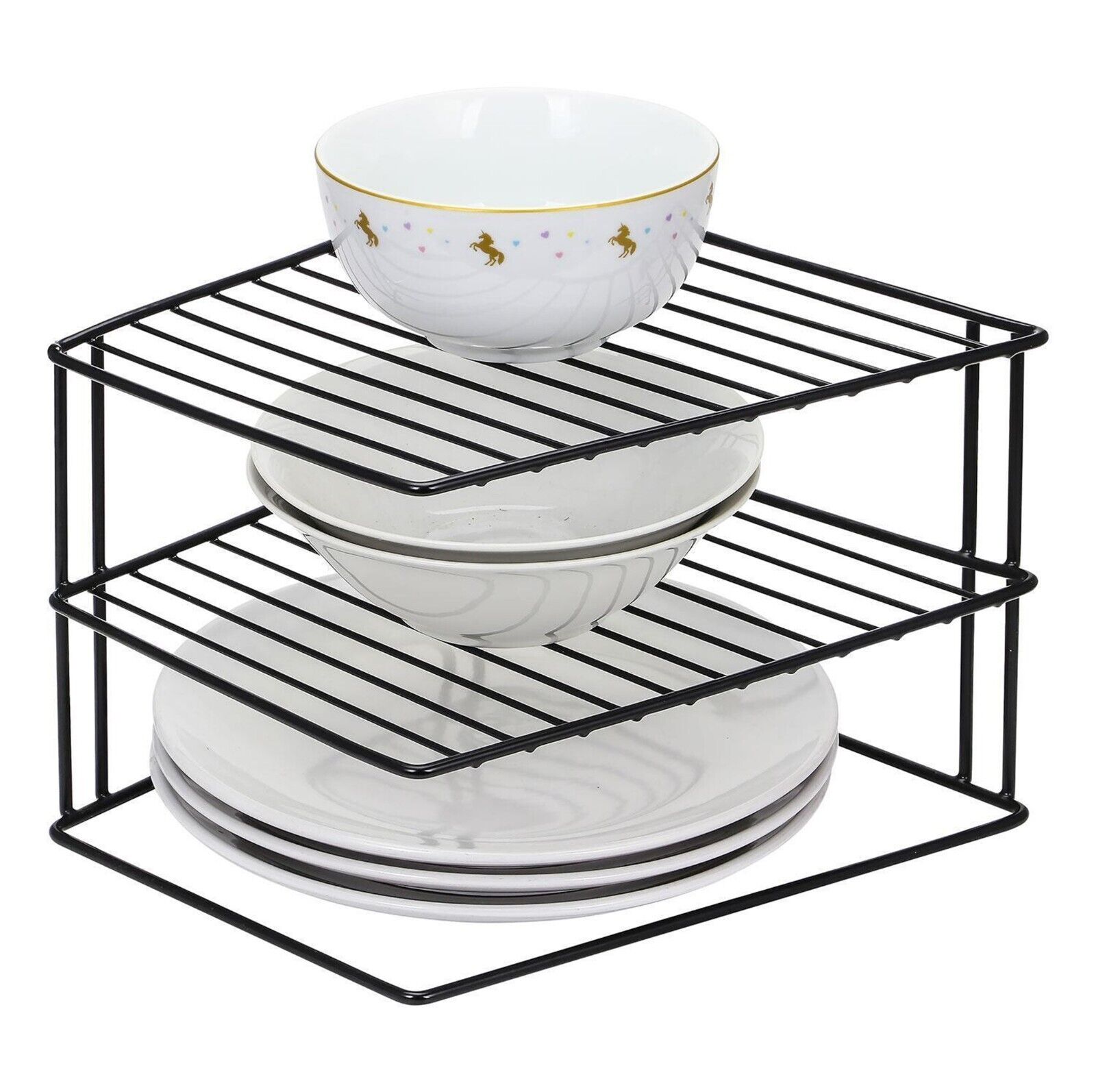 3 TIER BLACK CORNER KITCHEN PLATE RACK TIDY CUPBOARD SHELF INSERT ORGANISER NEW