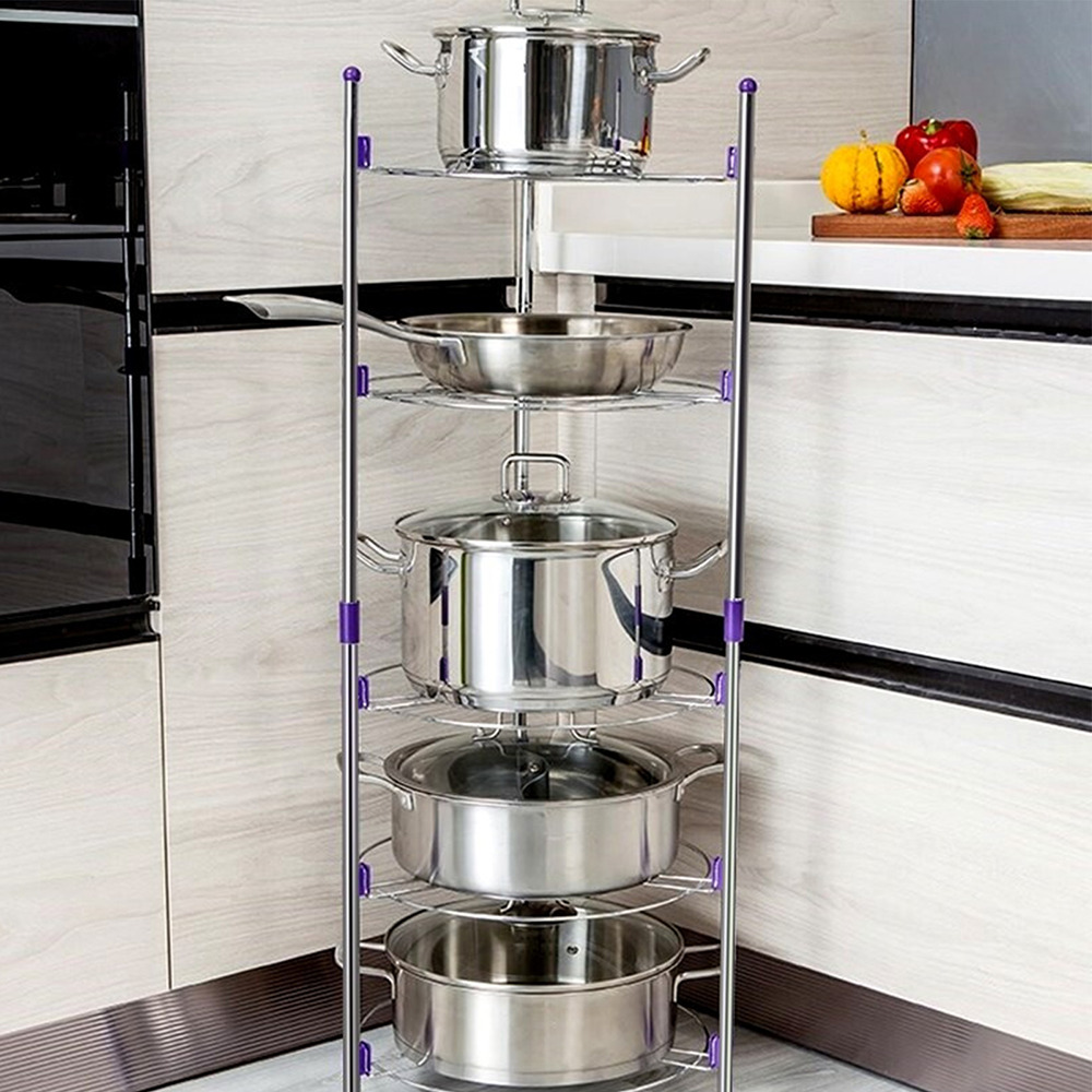 Carbon Steel 5 Tier Large Pots And Pans Storage Rack Kitchen Pans Corner Rack UK