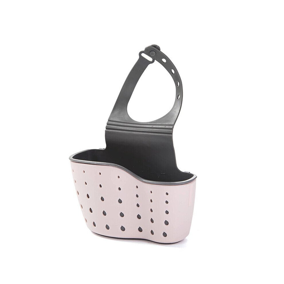 (Pink) 3 Pcs Kitchen Storage Rack Drain Basket Sink Faucet Hanging Racks & Holders