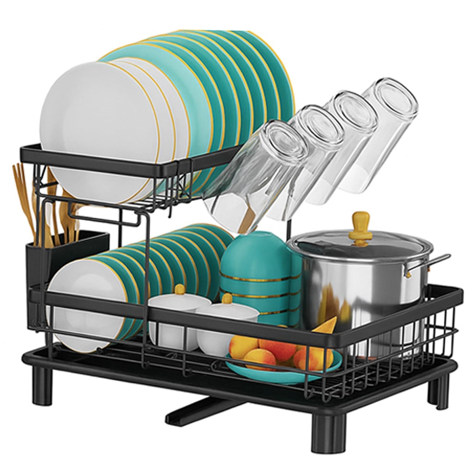2 Tier Dish Drainer Rack Cutlery Holder Plate Rack Kitchen Sink with Drip Tray