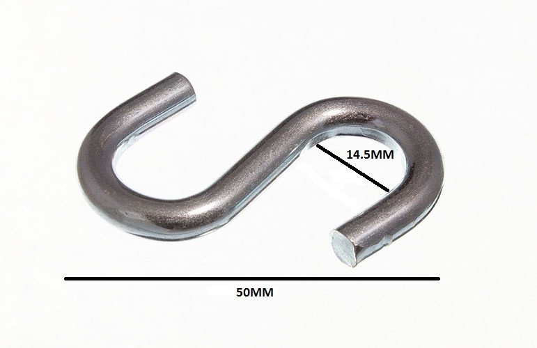 S Hook Utility Kitchen Rack Hook 2 Inch 50mm ZP Steel With Pack Size 25