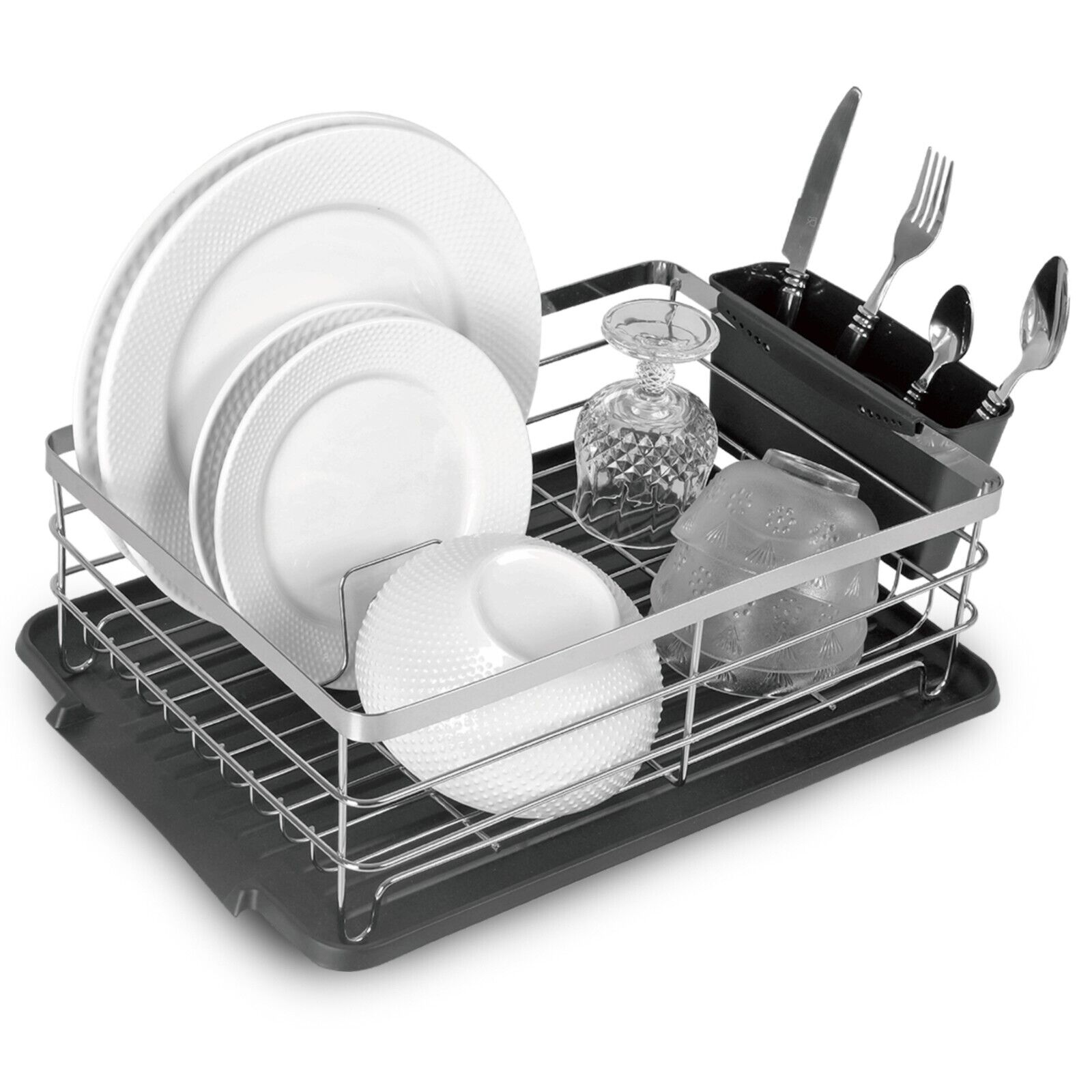 Kitchen Dish Plate Rack Drainer Cutlery Utensils Holder Drip Tray