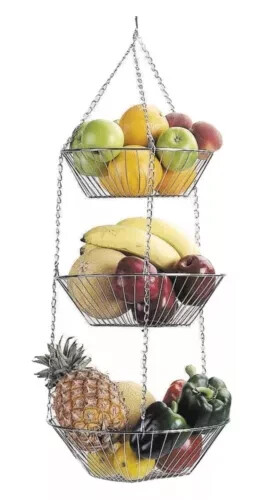 3-TIER HANGING FRUIT VEGETABLE BASKET CHROME KITCHEN STORAGE HOLDER RACK