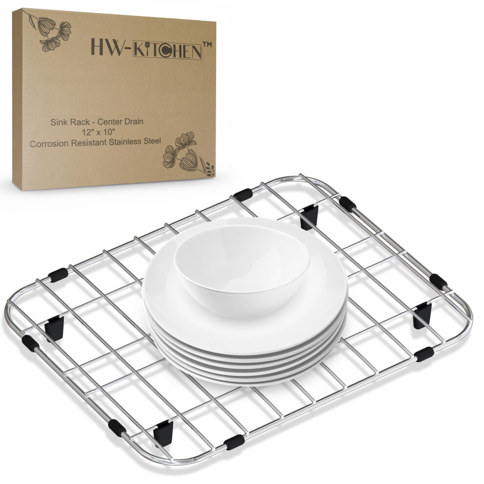HW-Kitchen 12"" x 10"" Sink Protector for Kitchen Sink - Stainless Steel Kitchen Sink Rack for Bottom for Sink - Sink Mat - Sink Drying Rack - Kitchen