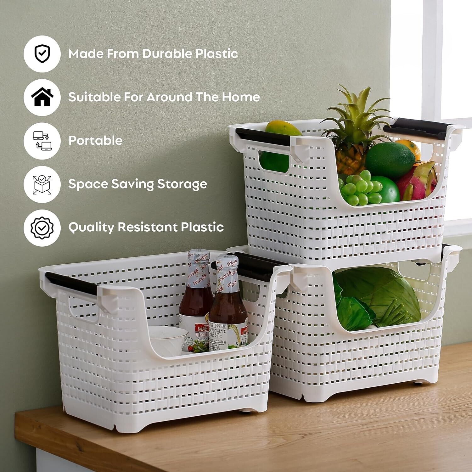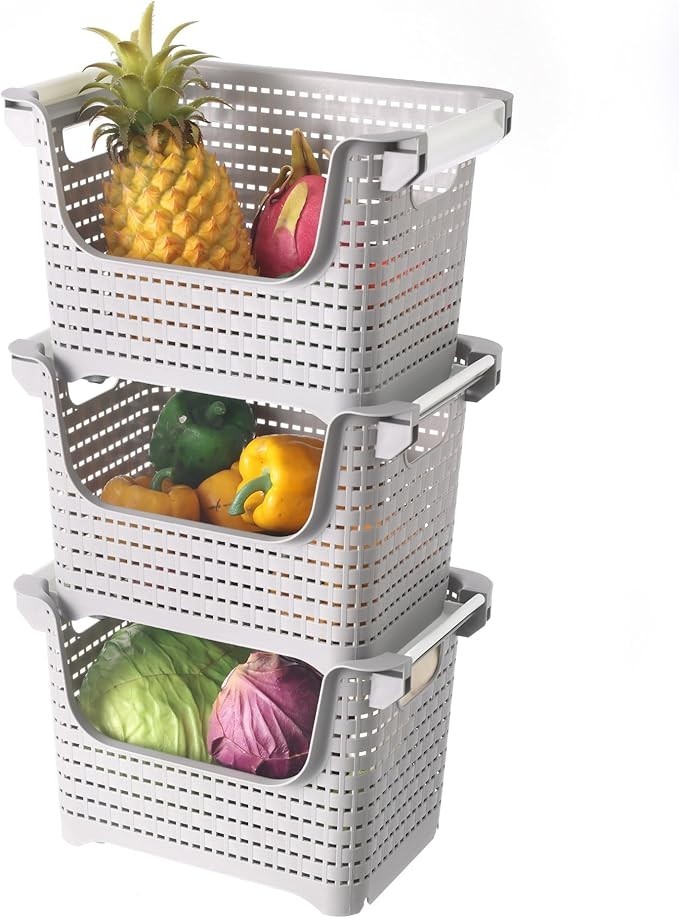 3 Tier Vegetable Fruit Storage Basket Kitchen Stacking Stackable Rack Tidy