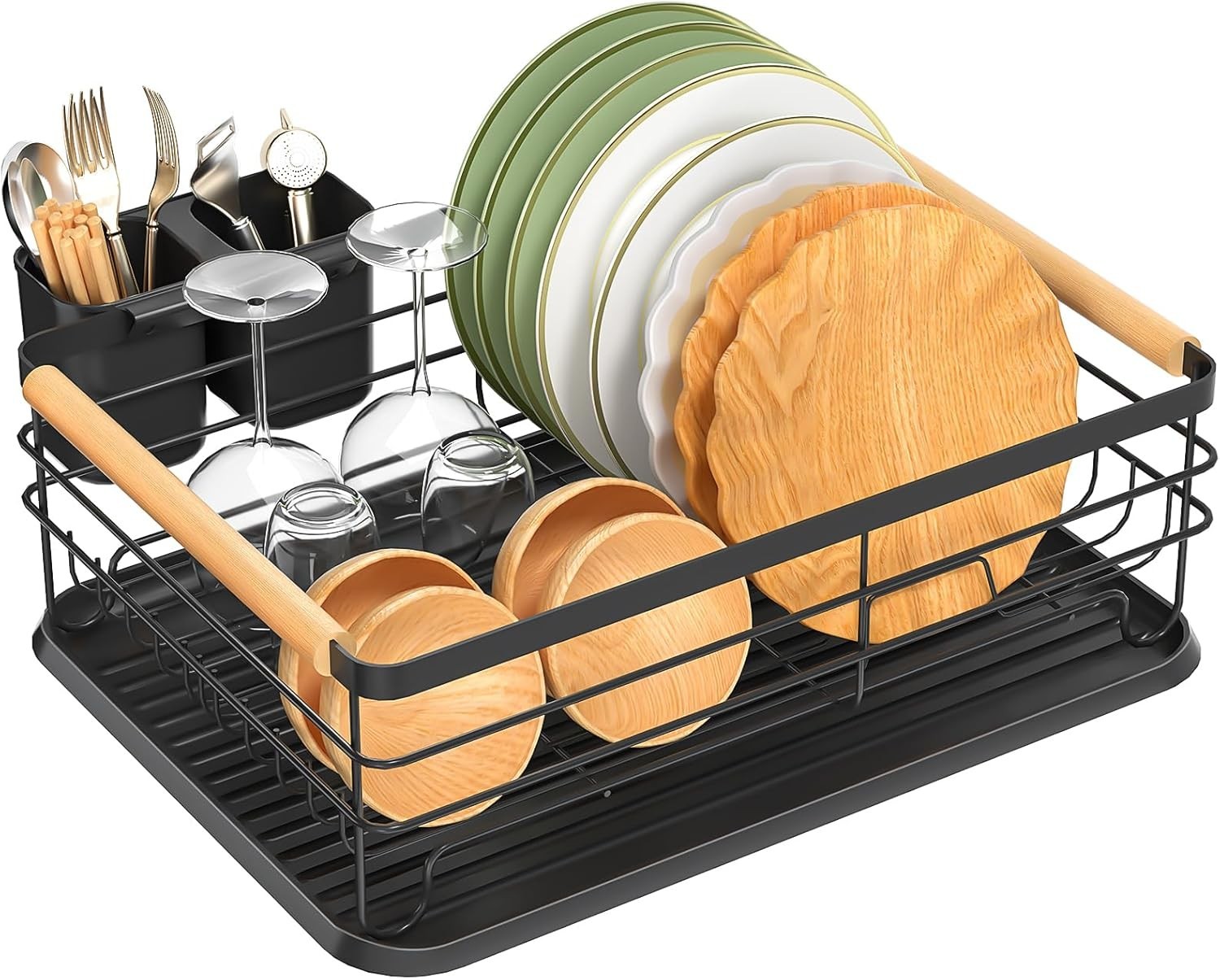 Dish Drying Rack Black Expandable Dish Drainer Cutlery Holder Kitchen Dish Rack