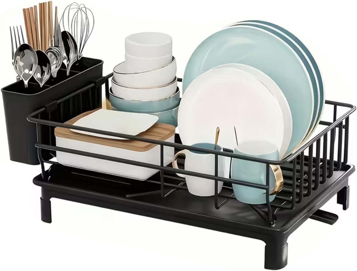 1 Tier Kitchen Dish Drainer Rack Cutlery Holder Plate Rack Sink with Drip Tray