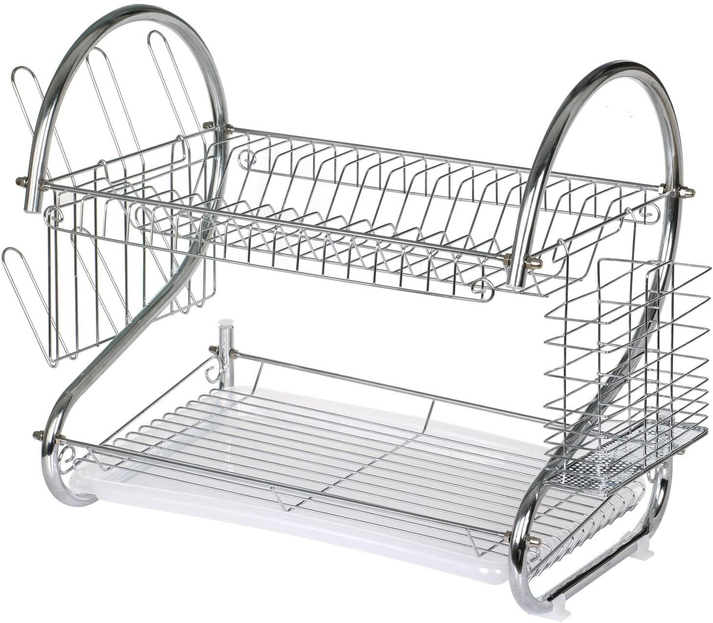 TRIXES 2 Tier Chrome Kitchen Drying Rack NEW Dishes Plates Bowls Mugs Cutlery