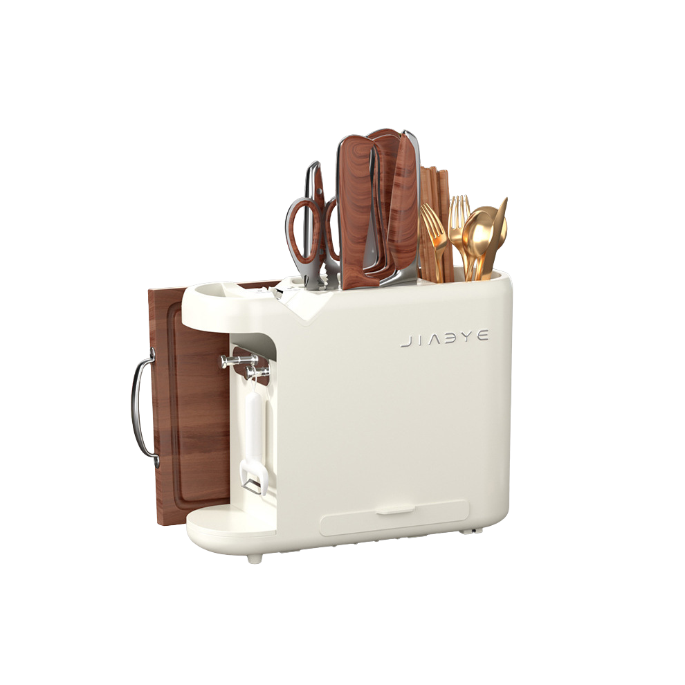 White Multifunctional Kitchen Knife Rack Storage Organizer With Built In Sharpener For Knives Chopsticks Cutting Boards And Pot Lids Knife Blocks & St
