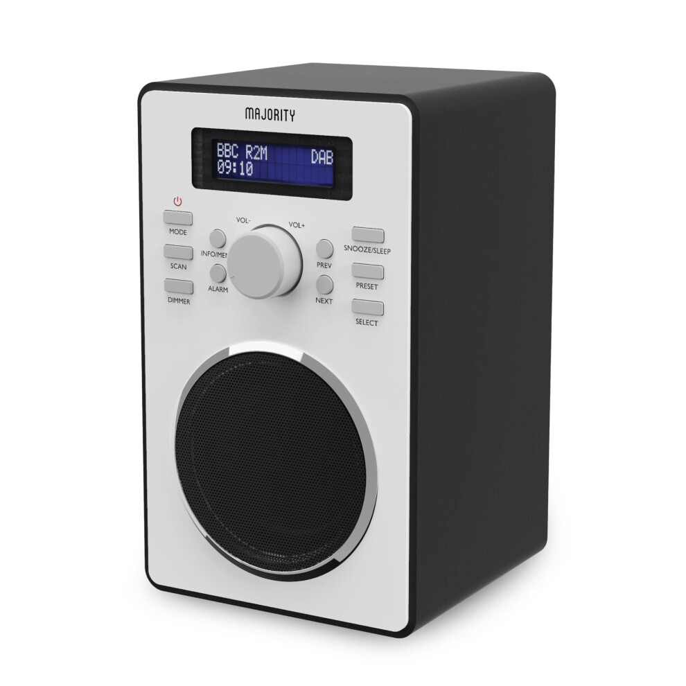 DAB/DAB+ Digital Radio | Solid Wood Cabinet | Kitchen & Bedside FM Radio with 20 Presets, Dual Alarm & Snooze Function | LED Display & 3.5mm Jack |