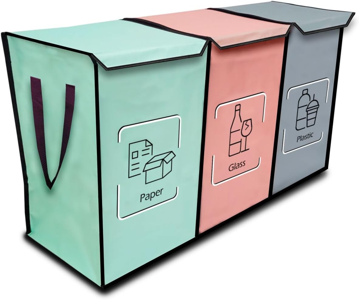 NYS CLOUD - Reusable Recycling Bin Bags, 3-Pack Indoor and Outdoor Separate Waste Sorting Organizer, Waterproof Recycle Bins for Kitchen Home Office