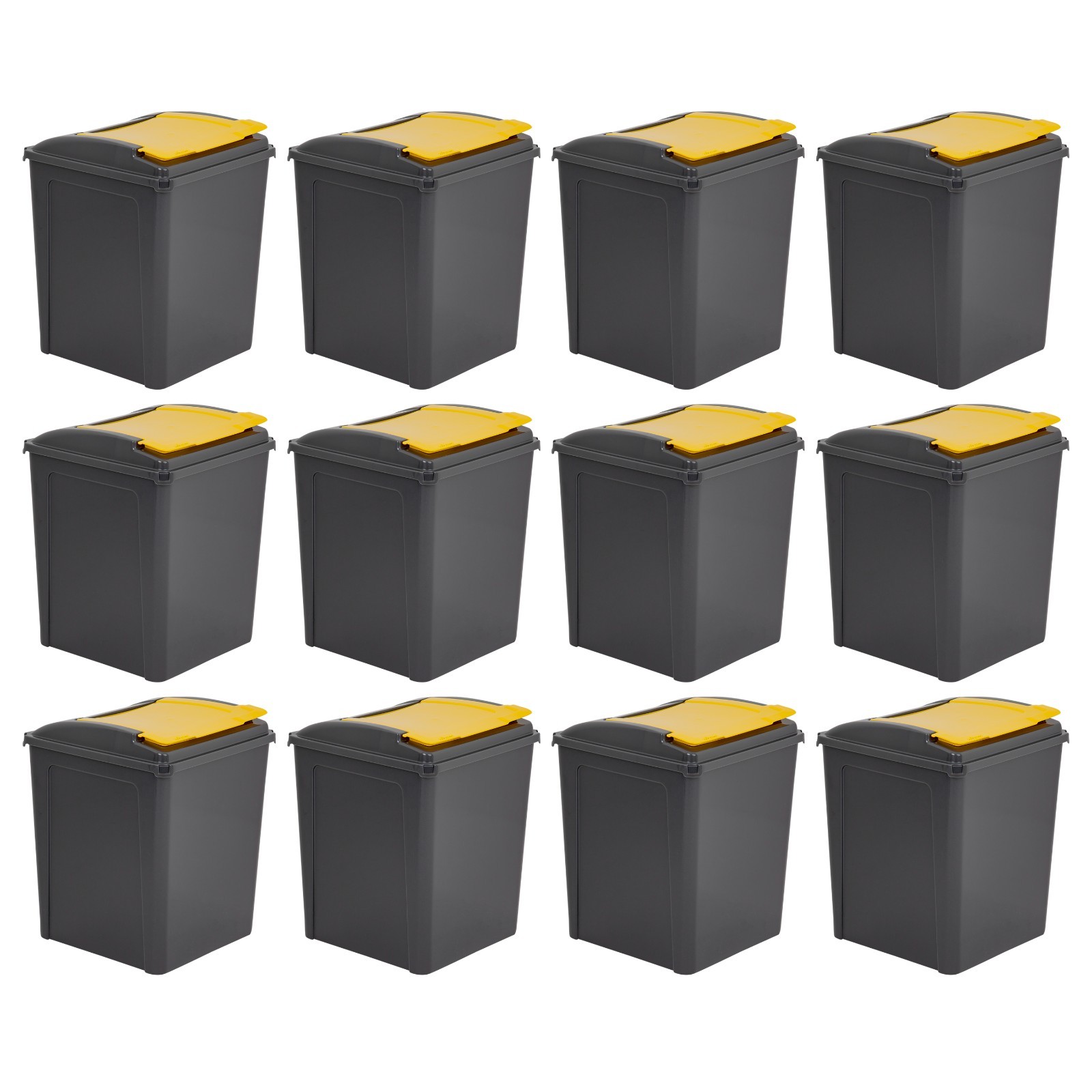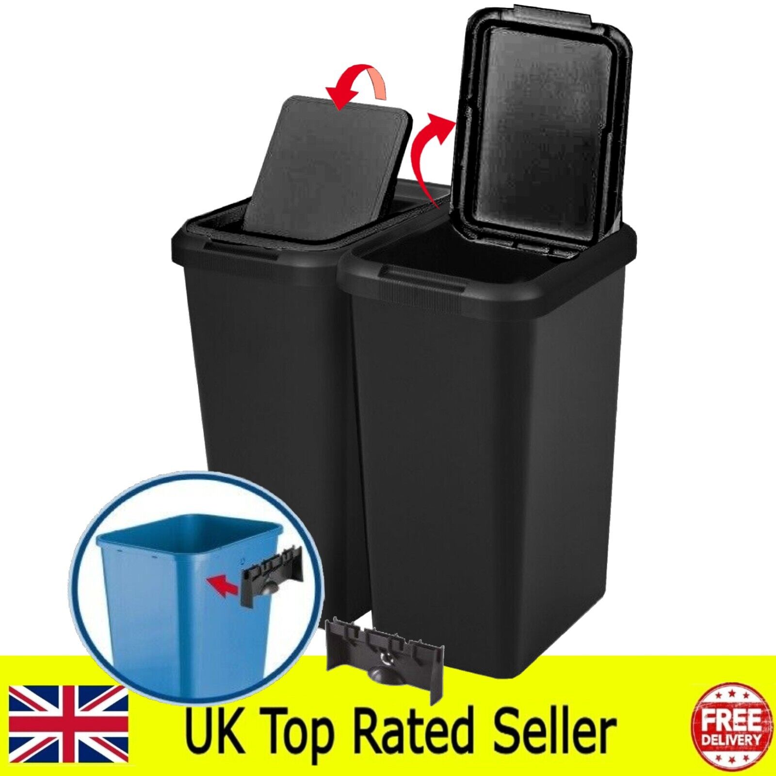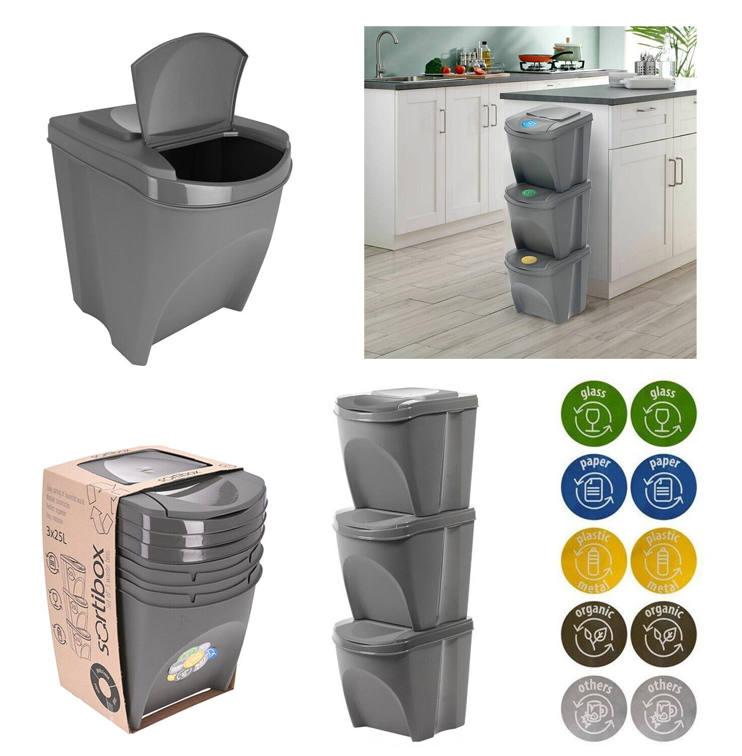 3 x 25L Recycle Bins Stackable Food Kitchen Waste Recycling Lids Sorting Dustb