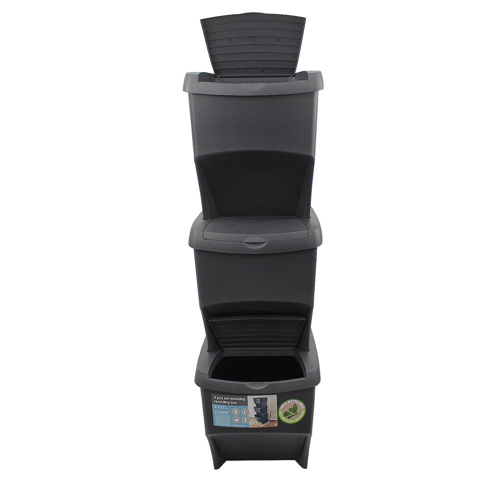 Recycle Bins 3 x 22L Food Stackable Waste Recycling Lids Kitchen Garden Dustbins