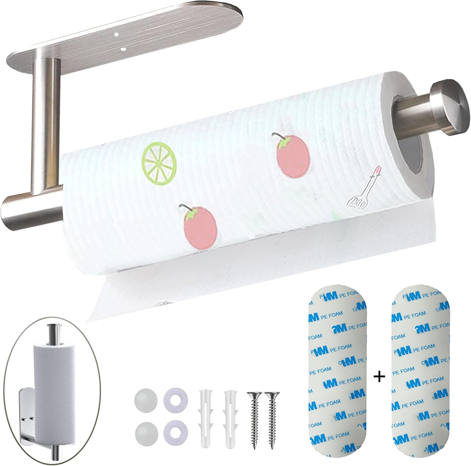 Paper Towel Holder Under Cabinet - Self-Adhesive or Drilling, Kitchen Roll Holder Wall Mounted, Towel Rack for Organization and Storage, Stainless St