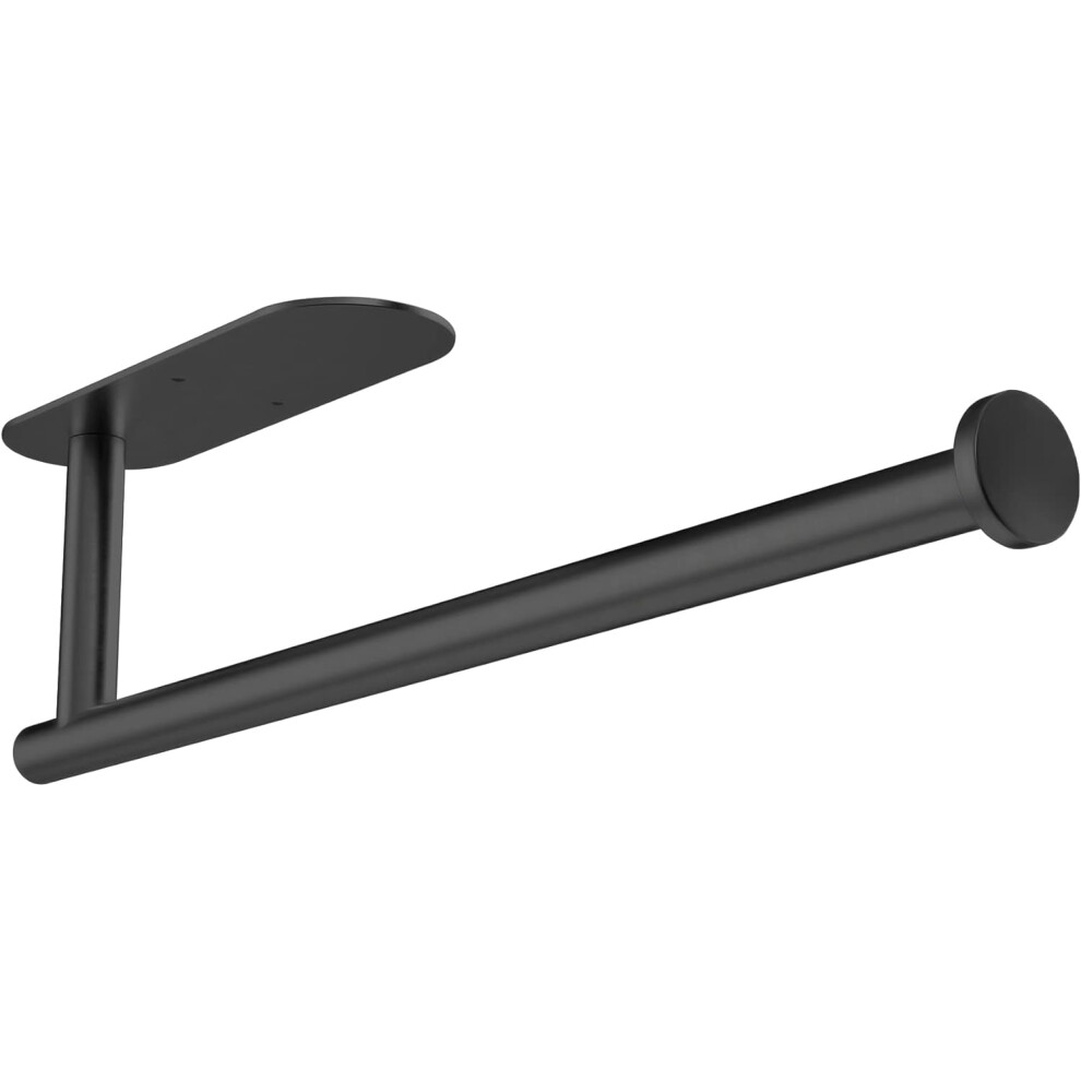 Brussels08 Wall Mounted Metal Paper Towel Holder Under Cabinet Over Door Paper Roll Holder Stand Organizer Rack Towel Hanger for Kitchen Bathroom Black