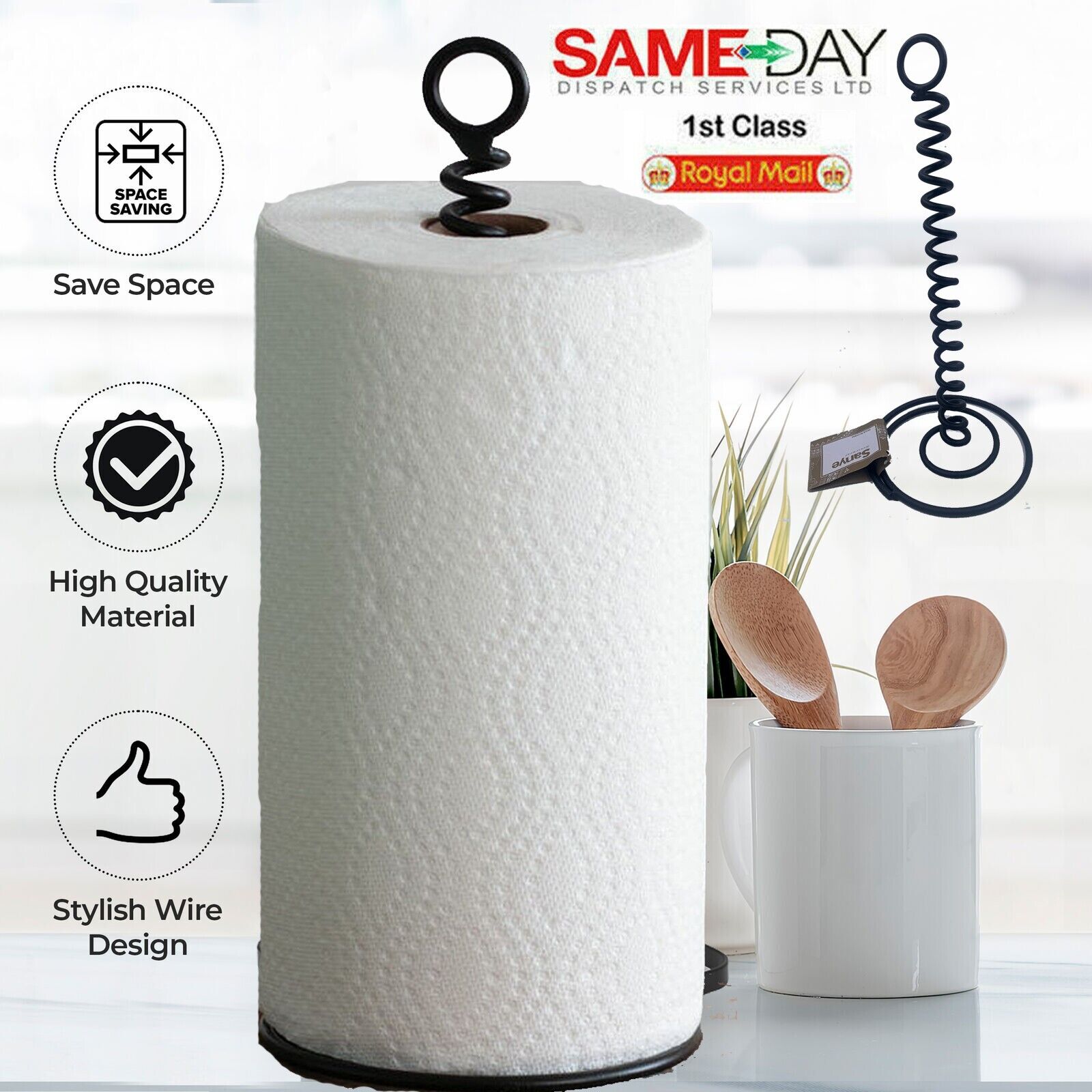 Corkscrew Kitchen Roll Holder Black Paper Towel Holder Table / Counter Top Metal