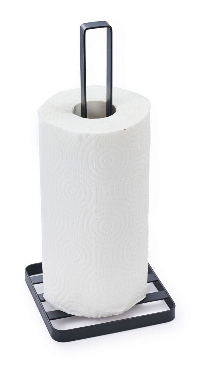 Kitchen Roll Holder Black Sturdy Plastic Design Free-Standing Stylish Whitefurze