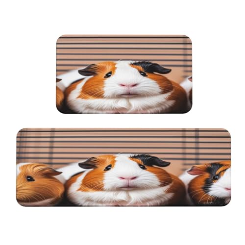 Guinea Pigs Kitchen Rugs Set of 2, Cushioned Anti-Fatigue Kitchen Mats for Floor, Waterproof Comfort Standing Mat Absorbent Velvet Kitchen Runner Rugs 17"x30"+17"x47"