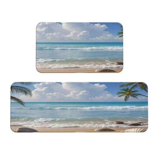 Animal deep-sea Seahorses Kitchen Rugs Set of 2, Cushioned Anti-Fatigue Kitchen Mats for Floor, Waterproof Comfort Standing Mat Absorbent Velvet Kitchen Runner Rugs 17"x30"+17"x47"