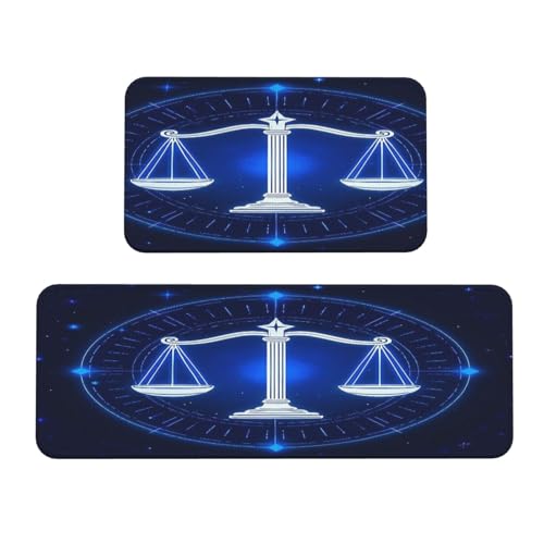 Libra Zodiac Astrology Kitchen Rugs Set of 2, Cushioned Anti-Fatigue Kitchen Mats for Floor, Waterproof Comfort Standing Mat Absorbent Velvet Kitchen Runner Rugs 17"x30"+17"x47"
